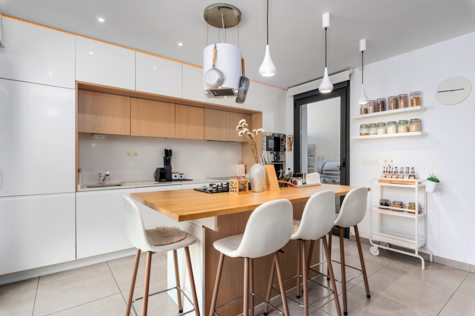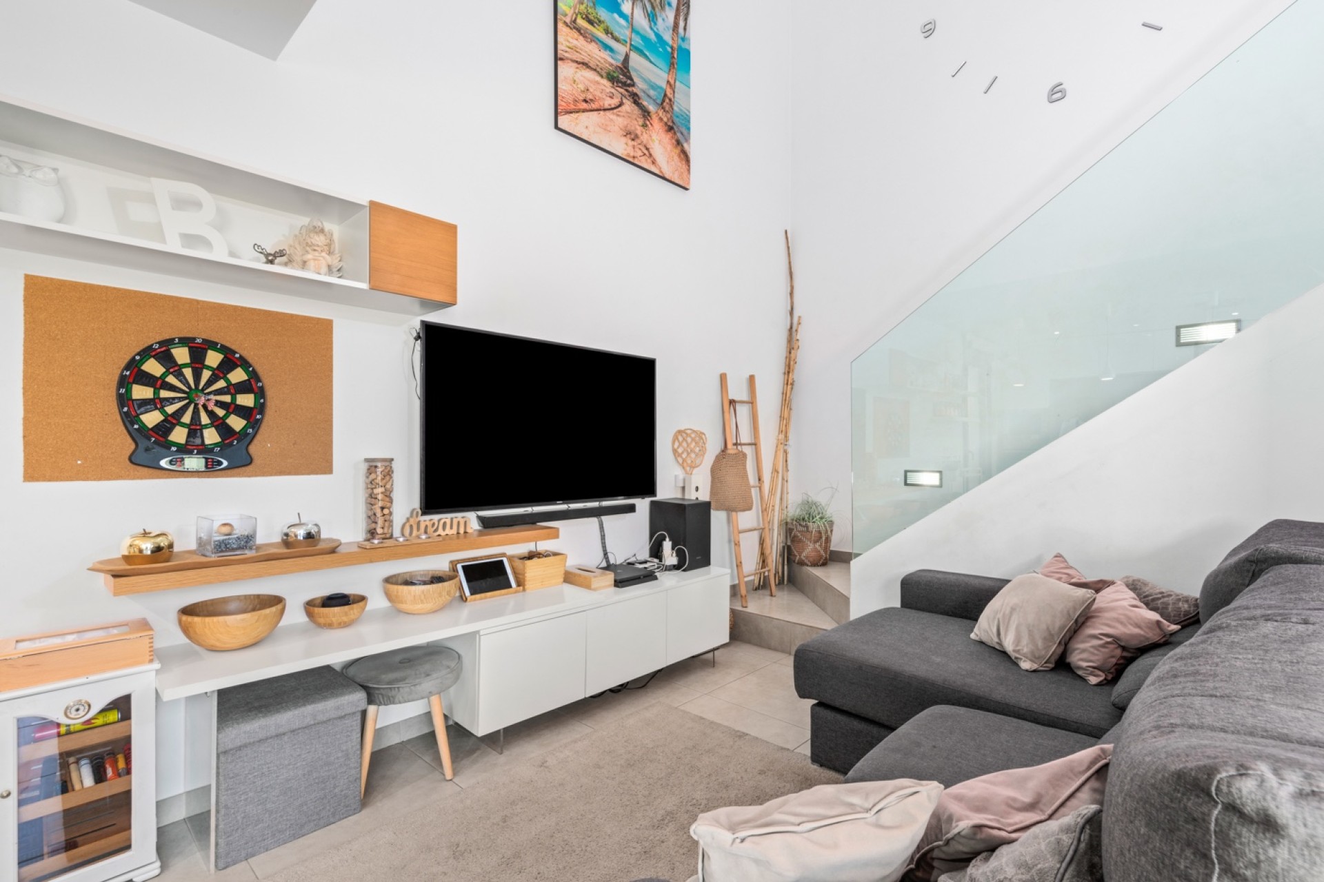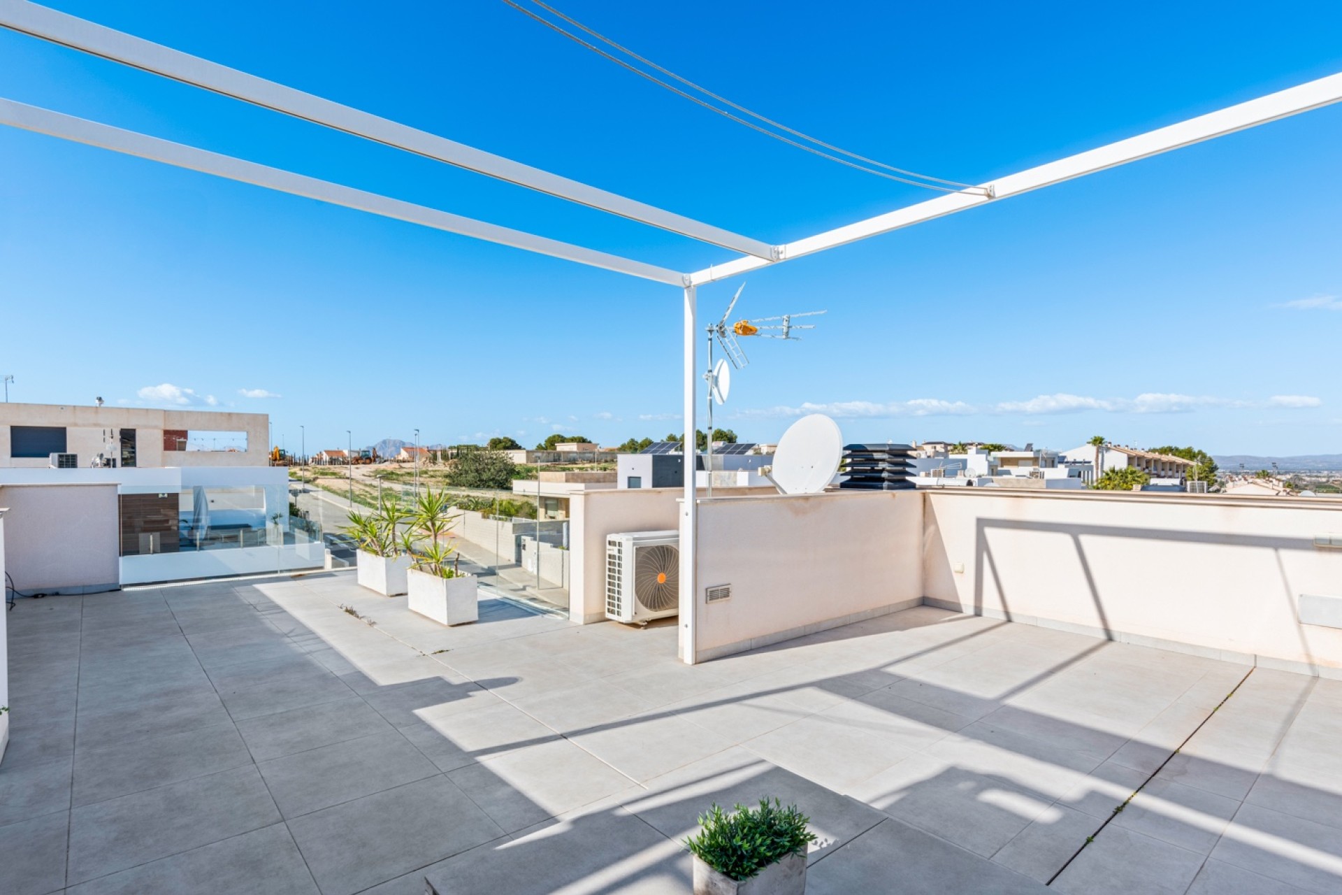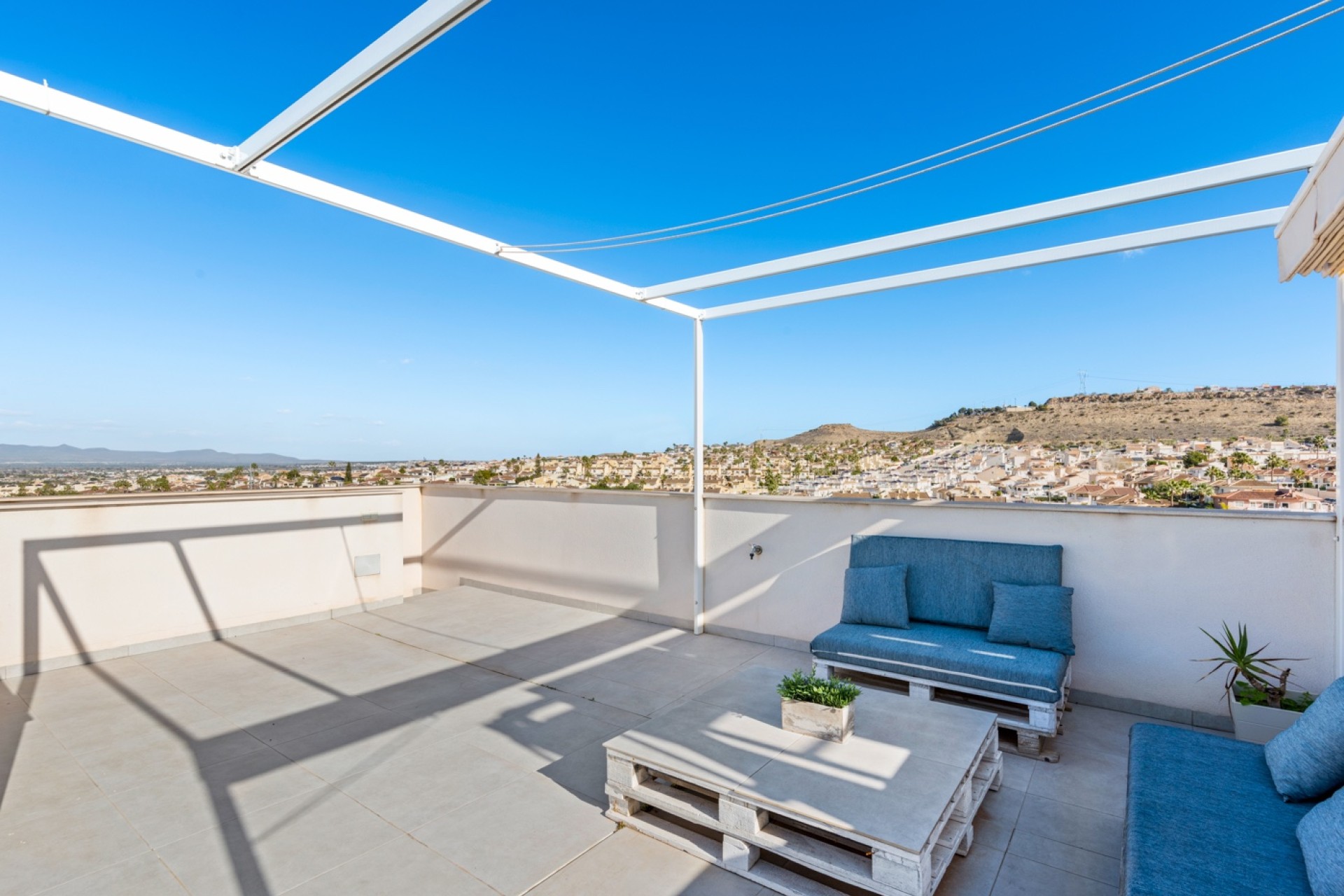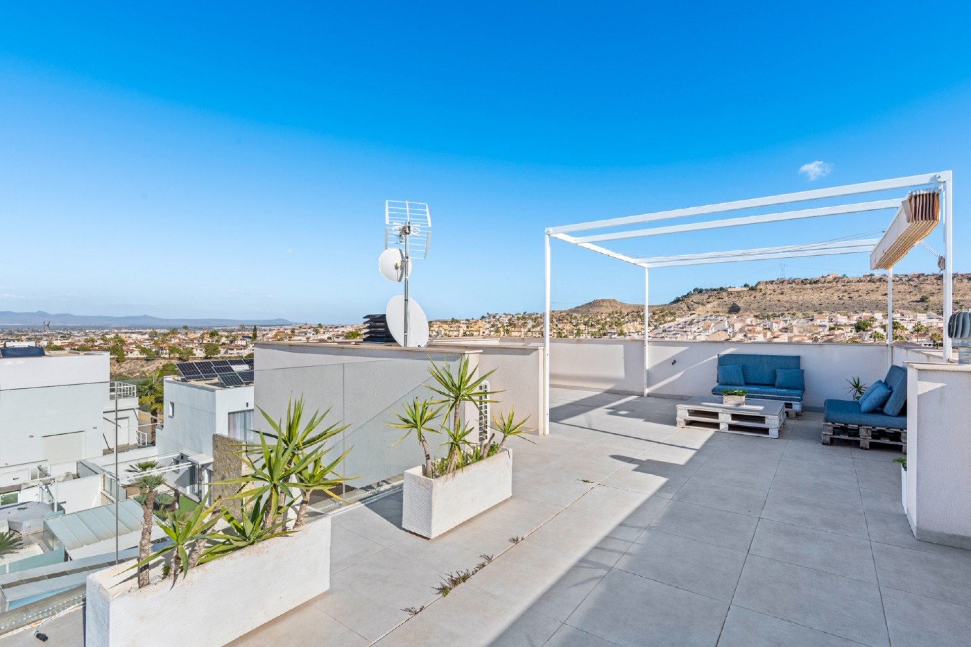 The villa features a tiled garden with a private swimming pool and a barbecue area, perfect for enjoying the sunny climate. The private rooftop solarium offers spectacular views of the mountains and the coastline stretching as far as Santa Pola. With ducted air conditioning in the main villa and an additional unit in the apartment, comfort is guaranteed all year round. Don’t miss the opportunity to make this house your home!