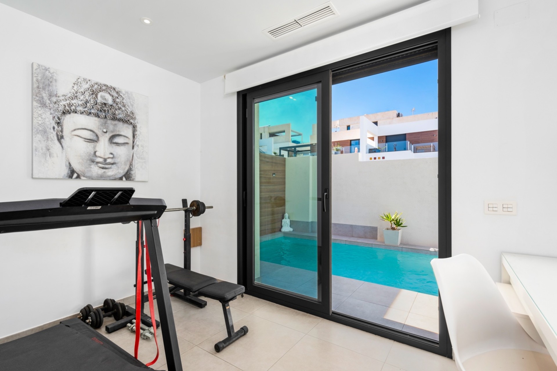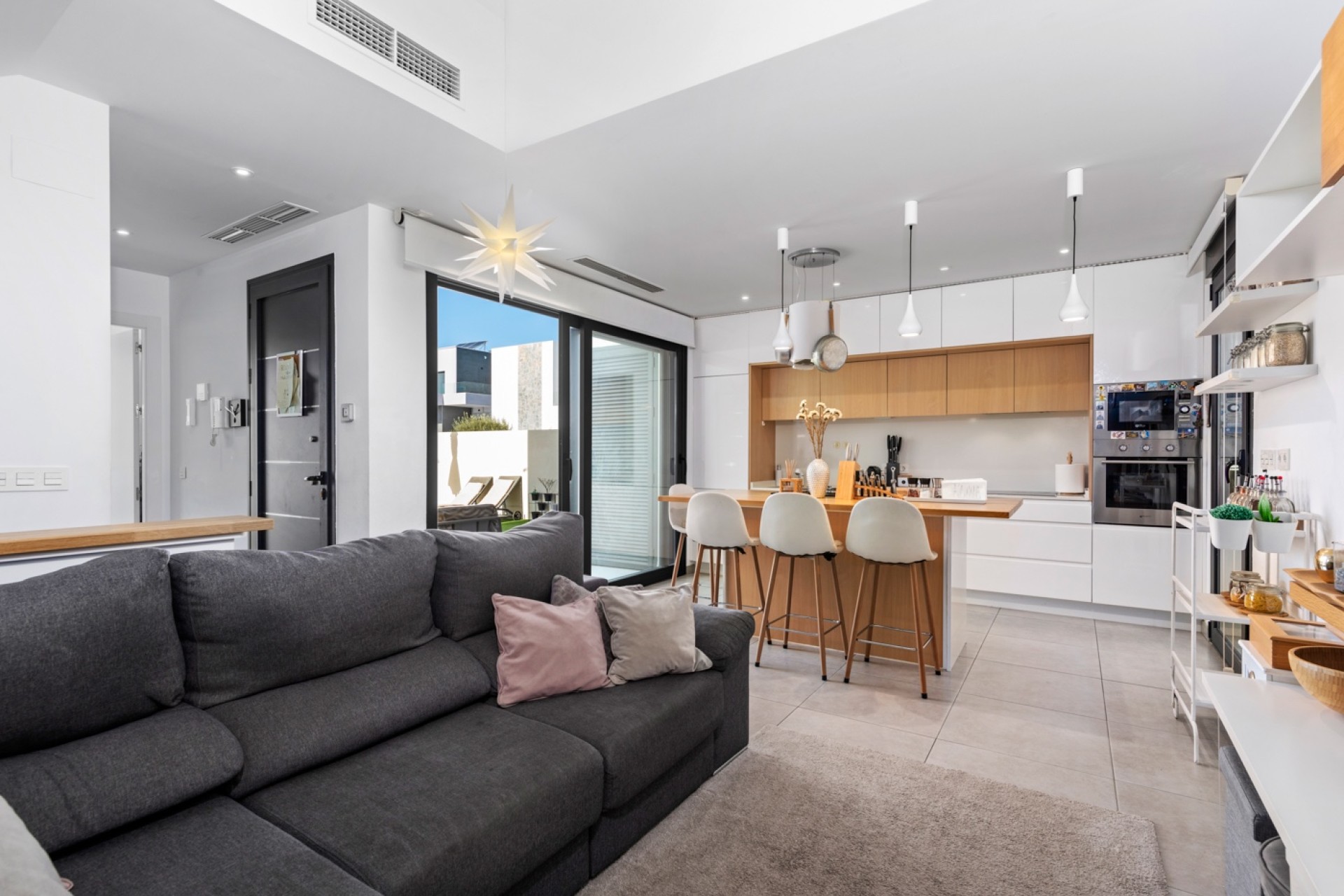 Discover the opportunity to live in this stunning three-bedroom detached villa, ready to move into! East-facing and like new, this property offers a bright and welcoming atmosphere. Enjoy a spacious living/dining area that connects to a modern kitchen equipped with an island and direct access to the garden. In addition, there is an independent 70 m² studio, ideal for hosting guests or generating rental income, as it has its own private entrance.